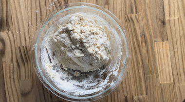 In a medium bowl combine sourdough starter, milk, and maple syrup together. Add to the crumbly mixture and mix. The dough will be very crumbly but should come together more after you put it on the floured surface and combine together further. Don’t over-knead!